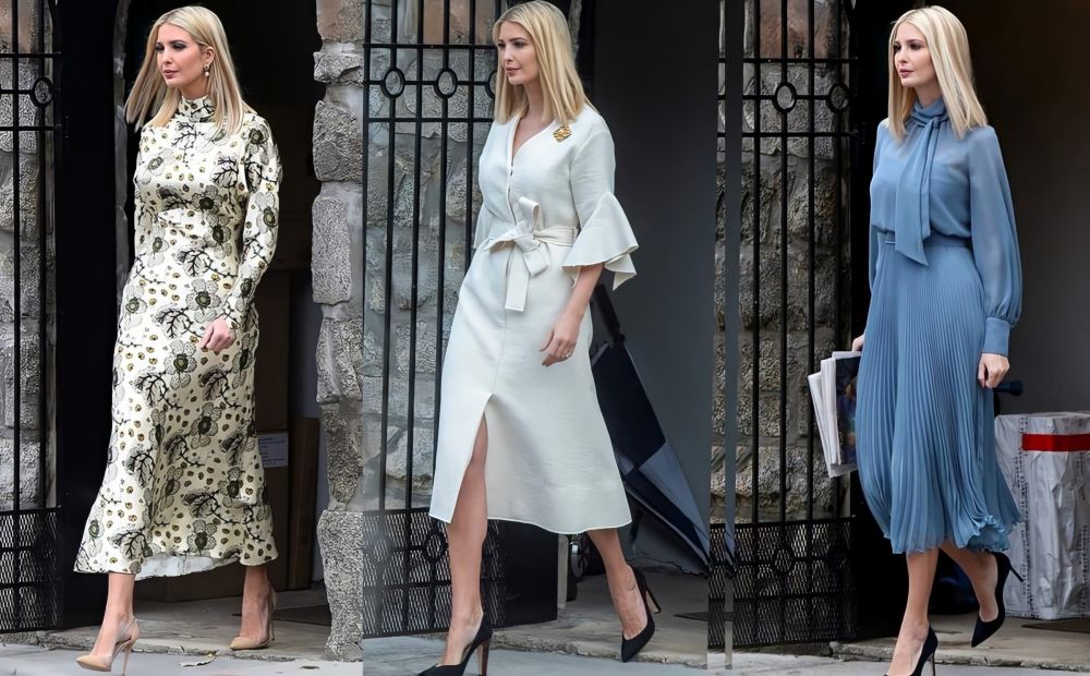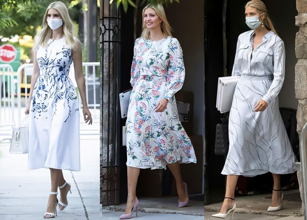 Cựu người mẫu Ivanka Trump (sinh năm 1981) thường được truyền thông lẫn công chúng đánh giá cao về phong cách mặc đẳng cấp và cuốn hút. Với vai trò tư vấn cấp cao của Tổng thống Mỹ, cô thường chọn trang phục kín đáo mà vẫn tôn vóc dáng.