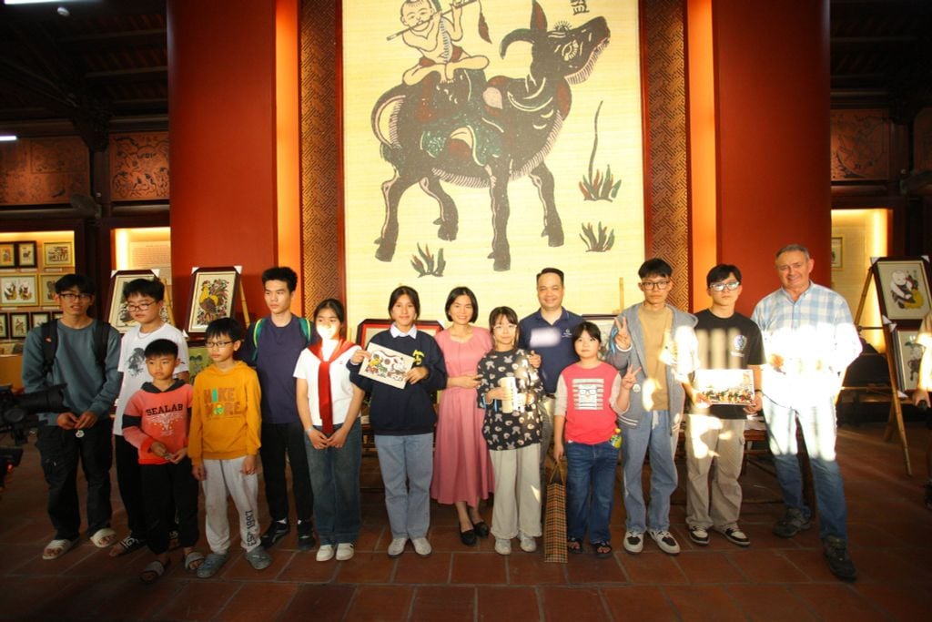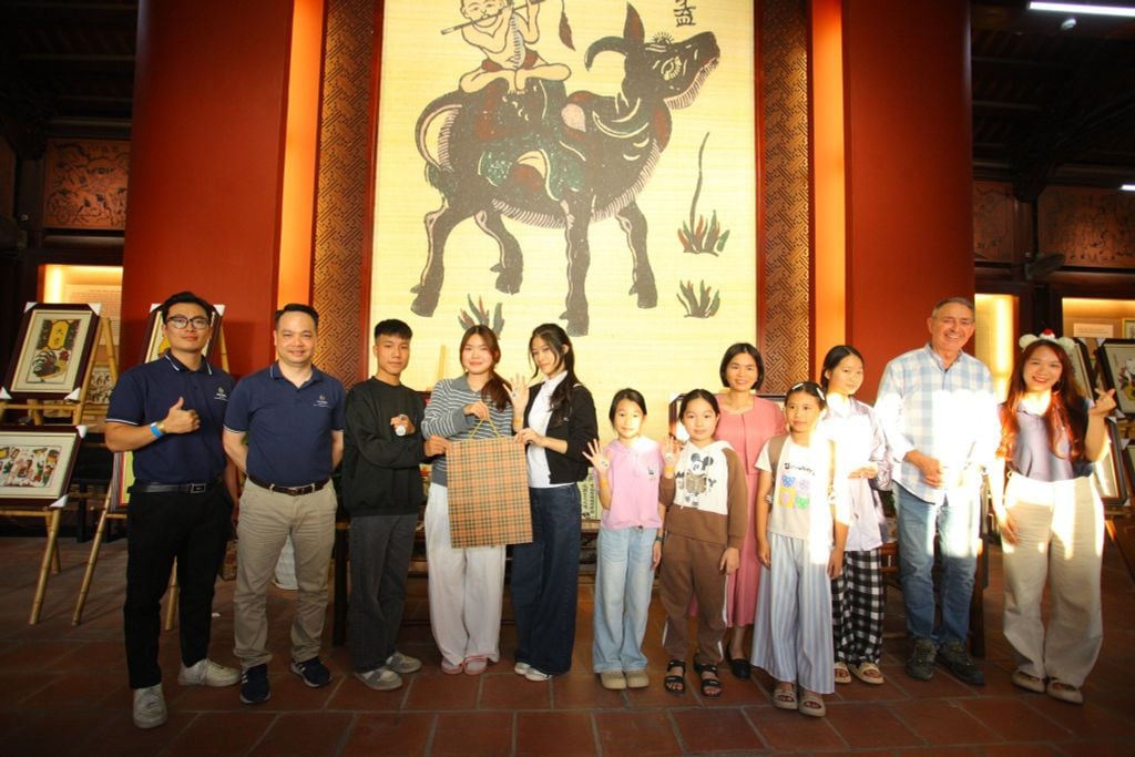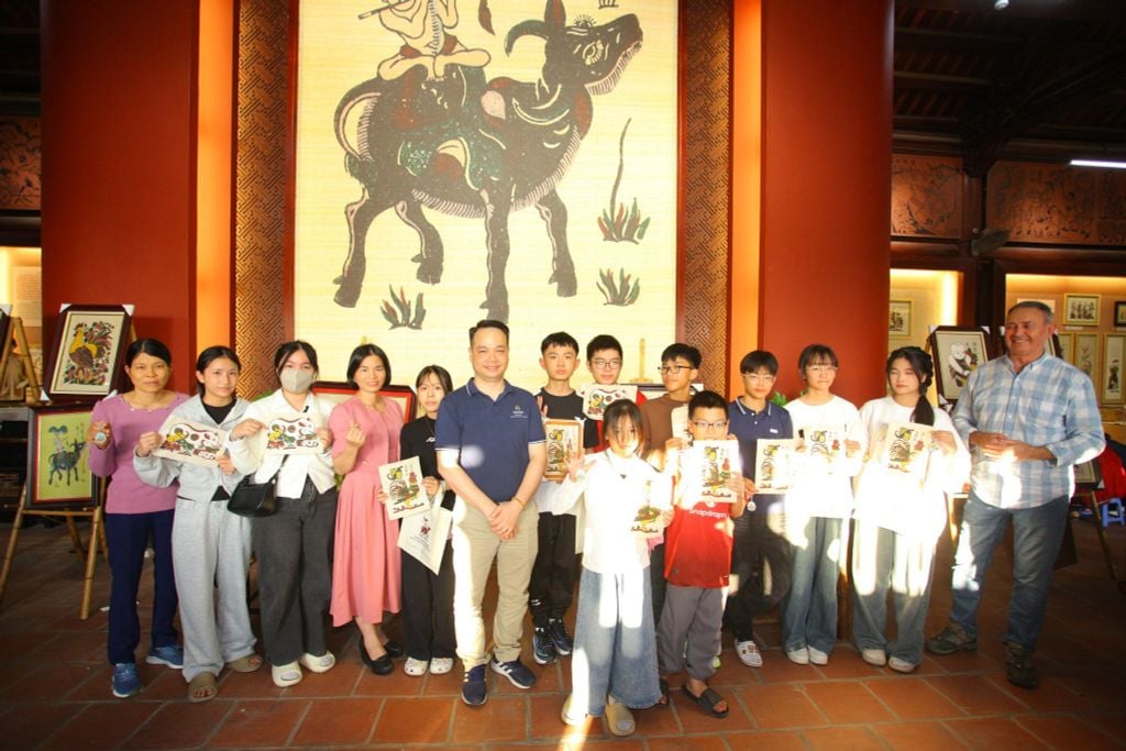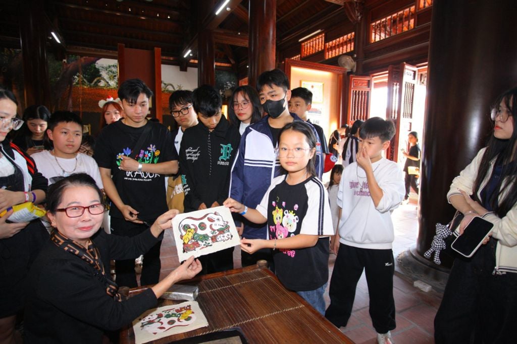 Học sinh được trực tiếp trải nghiệm in tranh dân gian, hiểu về chất liệu điệp, màu sắc tự nhiên và nét đẹp mộc mạc của nghề tranh truyền thống nổi tiếng cả nước.