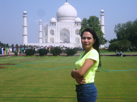 | Tác giả chụp ảnh trước đền Taj Mahal. (Ảnh: Thủy Tiên) |