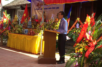 | Ông Nguyễn Văn Thật phát biểu trong buổi lễ khánh thành Tam Quan. |