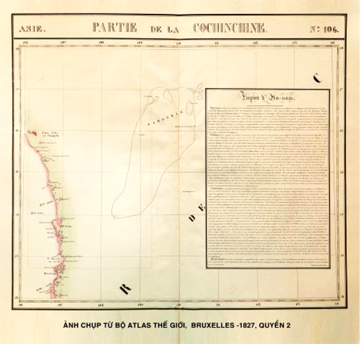 Quý vị đều biết bộ bản đồ Atlas do nhà nhà địa lý học người Bỉ Philippe Vandermaelen (1795-1869) vẽ năm 1827 là bộ bản đồ được công nhận và sử dụng phổ biến trên toàn thế giới. Trong 111 tấm bản đồ các nước châu Á, Empire d'An-nam (Đế chế An Nam – tên gọi nước Cộng hòa Xã hội Chủ Nghĩa Việt Nam lúc đó) được giới thiệu thông qua 4 tấm. Trong đó, tấm 106 đề Partie de la Cochinchine vẽ đường bờ biển miền Trung Việt Nam từ vĩ tuyến 12 đến vĩ tuyến 16. Phía ngoài khơi, Paracels (Hoàng Sa) được vẽ chi tiết và chuẩn xác trong khoảng vĩ độ từ 16 đến 17 và kinh độ từ 109 đến 111. Trong khi đấy tấm bản đồ số 98 đề Partie de la Chine (tên gọi Cộng hòa Nhân dân Trung Hoa lúc đó) vẽ khu vực Quảng Đông và đảo Hải Nam, cho thấy rõ biên giới cực nam của Trung Quốc khi đó chỉ đến đúng cực nam của đảo Hải Nam, chưa chạm đến vĩ độ 18.