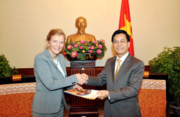Thay mặt Phó Thủ tướng, Bộ trưởng Bộ Ngoại giao Phạm Bình Minh tiếp nhận Ủy nhiệm thư của bà Astrid Bant, Thứ trưởng Hà Kim Ngọc đã hoan nghênh và chúc mừng bà Astrid Bant nhận nhiệm vụ tại Việt Nam trên cương vị mới.