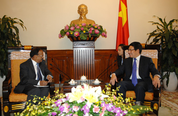 Tại buổi tiếp, Phó Thủ tướng, Bộ trưởng Ngoại giao Phạm Bình Minh chúc mừng các thành tựu to lớn mà Chính phủ và nhân dân Ấn Độ đã đạt được trong thời gian qua; bày tỏ tin tưởng rằng dưới sự lãnh đạo của Chính phủ Ấn Độ hiện nay, Ấn Độ sẽ sớm trở thành một cường quốc quan trọng, có nhiều đóng góp tích cực vào việc duy trì hòa bình, ổn định và phát triển thịnh vượng ở trong khu vực và trên trường quốc tế.