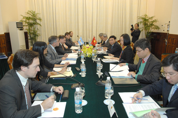 | Thứ trưởng Bộ Ngoại giao Hồ Xuân Sơn và Thứ trưởng Eduardo Zuain cùng chủ trì phiên tham khảo chính trị lần thứ VI giữa hai Bộ Ngoại giao. |
