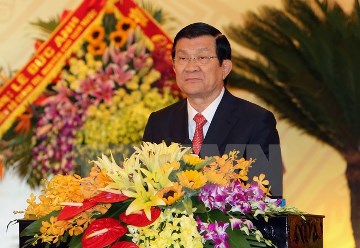 | Chủ tịch nước Trương Tấn Sang phát biểu chỉ đạo Đại hội. (Ảnh: Nguyễn Khang/TTXVN) |