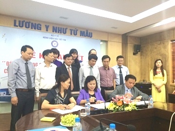 | Đại diện Bệnh viện Nội tiết Trung ương ký cam kết đổi mới phong cách thái độ phục vụ người bệnh. (Ảnh: V.C) |