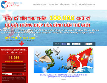 Trang web này do một nhóm tri thức trẻ Việt Nam khởi xướng sau sự kiện ngày 02/05/2014, Trung Quốc chính thức đưa giàn khoan Hải Dương 981 khai thác dầu khí trong vùng đặc quyền kinh tế và thềm lục địa của Việt Nam với những âm mưu chính trị và kinh tế được tính toán kỹ lưỡng. Chỉ trong vòng 4 ngày từ khi ra mắt, trang web đã đạt mốc 10.000 người Việt Nam ký tên vào thư ‘Thỉnh nguyện Biển Đông’, truyền tải thông điệp hòa bình cho Biển Đông đến với công luận trên toàn thế giới. Riêng thông điệp bằng 4 ngôn ngữ Anh, Trung, Pháp, Nhật được gửi đến nhân dân yêu chuộng hòa bình trên thế giới và công luận quốc tế qua địa chỉ: http://peaceforeastsea.com.