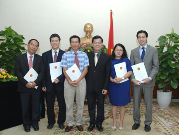 | Thứ Trưởng Hà Kim Ngọc và các đồng chí được trao quyết định. |