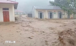 | Hàng trăm hộ dân ở khu Phú Hậu, xã Sơn Đông, Phú Thọ bị cô lập hoàn toàn do ảnh hưởng của cơn bão số 10. (Nguồn: TTXVN) |