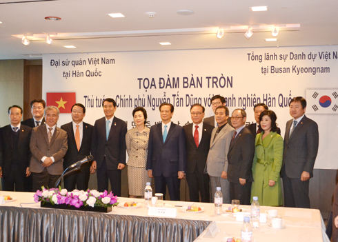 | Thủ tướng Nguyễn Tấn Dũng với doanh nghiệp Hàn Quốc. Ảnh: Tùng Lâm |