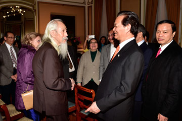 | Thủ tướng Nguyễn Tấn Dũng gặp gỡ và nói chuyện thân mật với đại diện cộng đồng người Việt đang học tập, làm ăn, sinh sống tại Bỉ. Ảnh VGP |