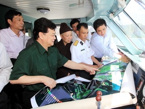 Thăm xã đảo Ngọc Vừng Anh hùng, Thủ tướng Chính phủ Nguyễn Tấn Dũng và Đoàn công tác đã đến dâng hương tại Khu di tích Chủ tịch Hồ Chí Minh, Nhà bia ghi tên các liệt sĩ; thăm đơn vị quân đội, biên phòng trên Đảo.