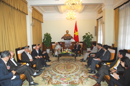 Thứ trưởng Ngoại giao Vũ Hồng Nam tiếp Ngài Hossein Sobbhaninia, Chủ tịch Nhóm nghị sĩ hữu nghị Iran - Việt Nam. Ảnh: Quang Hòa/TG&VN