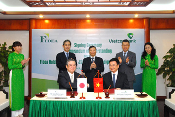 | Ngày 2/4/2013, tại Hà Nội, Phó Tổng Giám đốc Vietcombank Phạm Thanh Hà và Tổng Giám đốc Tập đoàn Fidea Holdings Seiji Satomura ký biên bản ghi nhớ hợp |