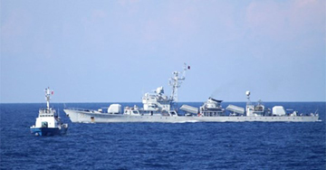 Tàu hộ vệ tên lửa của Trung Quốc ở khu vực giàn khoan Hải Dương-981 (Ảnh: Cảnh sát biển)