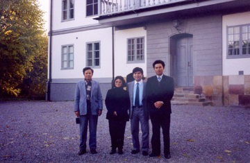 | Ông Đinh Tích (thứ hai từ phải sang) cùng các thành viên Hội Hữu nghị Việt Nam - Thụy Điển trong chuyến thăm của đoàn đến Thụy Điển năm 1994. |