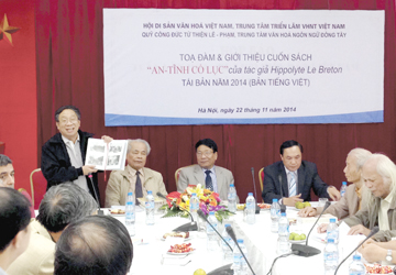 | Ông Lê Doãn Thăng, Đại diện Quỹ công đức từ thiện Lê - Phạm giới thiệu cuốn sách “An Tĩnh cổ lục” tái bản 2014. |