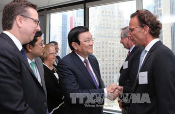 | Chủ tịch nước Trương Tấn Sang gặp gỡ đại diện doanh nghiệp Hoa Kỳ dự đối thoại. Ảnh: TTXVN |