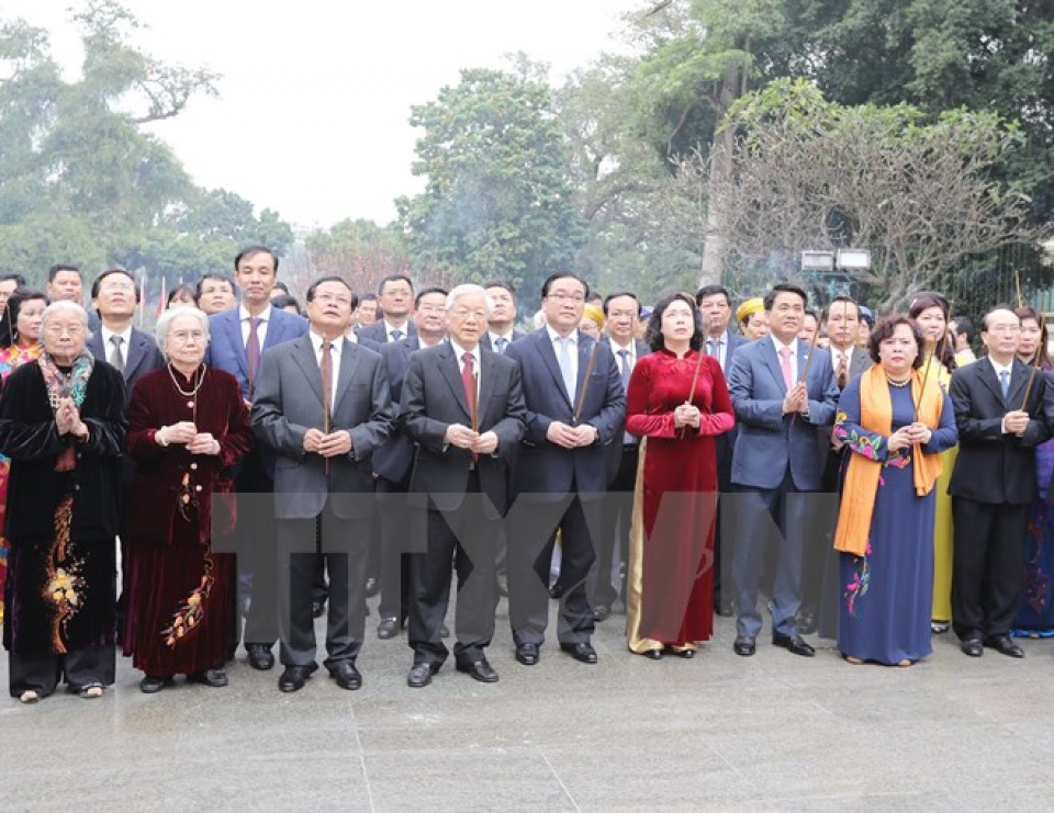 Tổng Bí thư Nguyễn Phú Trọng đã đến dâng hương trước Tượng đài Vua Lý Thái Tổ tại Vườn hoa Lý Thái Tổ, Đền Ngọc Sơn và Tượng đài Vua Lê Thái Tổ tại Di tích lịch sử văn hóa Đình Nam Hương, tưởng nhớ công ơn các vị tiên hiền, tiên liệt, các liệt tổ, liệt tông đã dày công xây dựng và bảo vệ non sông đất nước, Thủ đô Thăng Long-Hà Nội để con cháu ngày nay được chung hưởng thái bình, độc lập, tự do.