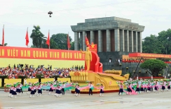 | Lễ kỷ niệm 80 năm Cách mạng tháng Tám thành công và Quốc khánh 2/9 diễn ra trong tiết trời Thu của Hà Nội. (Ảnh: Nguyễn Hồng) |