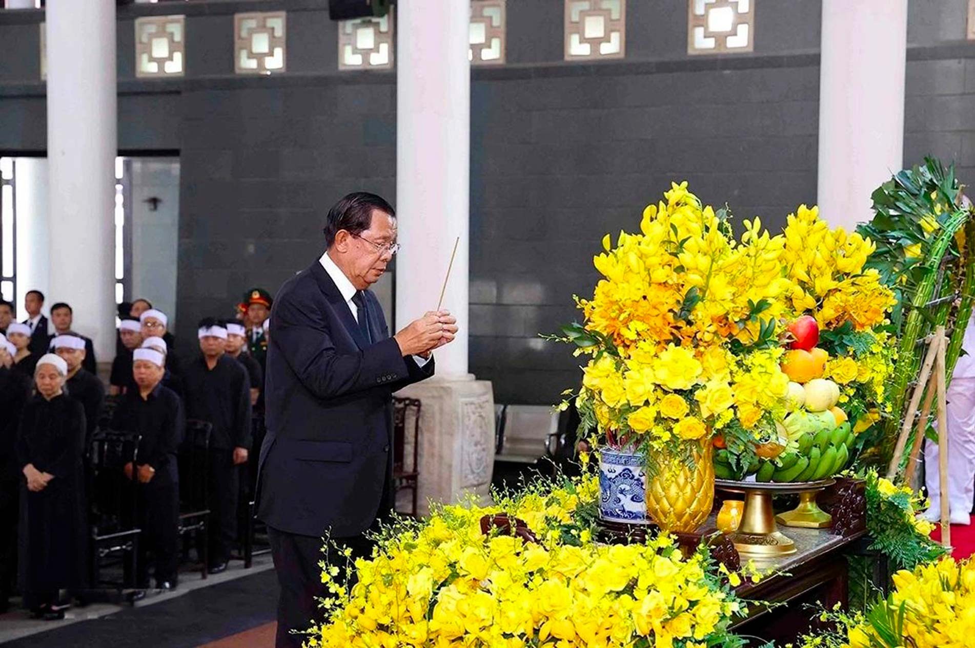 Với các nước láng giềng Lào, Campuchia anh em, đồng chí Tổng Bí thư luôn được coi là người kế tục xứng đáng sự nghiệp của Chủ tịch Hồ Chí Minh, là nhà lãnh đạo cách mạng xuất sắc, ưu tú trong thời đại mới. Trong các bức điện chia buồn, các nhà lãnh đạo cấp cao của Lào trân trọng ghi nhận những cống hiến hết tâm sức và trí tuệ của đồng chí Tổng Bí thư, đưa đất nước Việt Nam không ngừng phát triển, vị thế của Việt Nam được nâng cao rõ rệt trên trường quốc tế và khu vực. Chủ tịch Đảng Nhân dân Campuchia Hun Sen xúc động đánh giá di sản của đồng chí Tổng Bí thư, một lãnh tụ sáng suốt, người đã cống hiến trọn đời mình cho cuộc đấu tranh vì độc lập của Việt Nam và cho hòa bình, thịnh vượng của Nhân dân Việt Nam sẽ được nhiều thế hệ đời sau ghi nhớ. Với Trung Quốc, đồng chí Tổng Bí thư là người đồng chí thân thiết và người bạn chân thành, kết nên tình hữu nghị sâu sắc giữa hai Đảng, hai nước. Vừa qua, khi viếng đồng chí Tổng Bí thư Nguyễn Phú Trọng tại Đại sứ quán Việt Nam tại Bắc Kinh, Tổng Bí thư, Chủ tịch nước Trung Quốc Tập Cận Bình đã xúc động ghi lại những dòng cảm tưởng, đánh giá đồng chí Tổng Bí thư Nguyễn Phú Trọng là lãnh tụ kiệt xuất của nhân dân Việt Nam, người bạn vĩ đại của nhân dân Trung Quốc. |