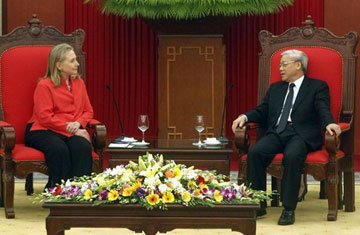 | Tổng Bí thư Nguyễn Phú Trọng tiếp Bộ trưởng Ngoại giao Hoa Kỳ Hillary Clinton |