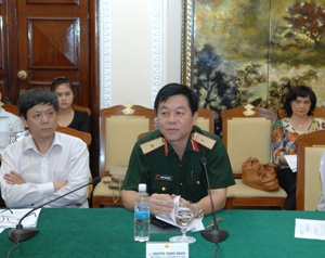 | Thiếu tướng Nguyễn Trọng Nghĩa, Phó Chủ nhiệm Tổng cục Chính trị, Bộ Quốc Phòng phát biểu tại Hội nghị. Ảnh: Minh Châu/TG&VN |