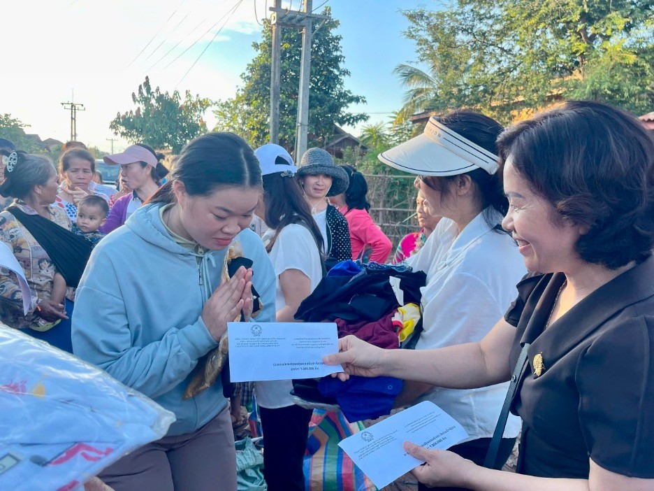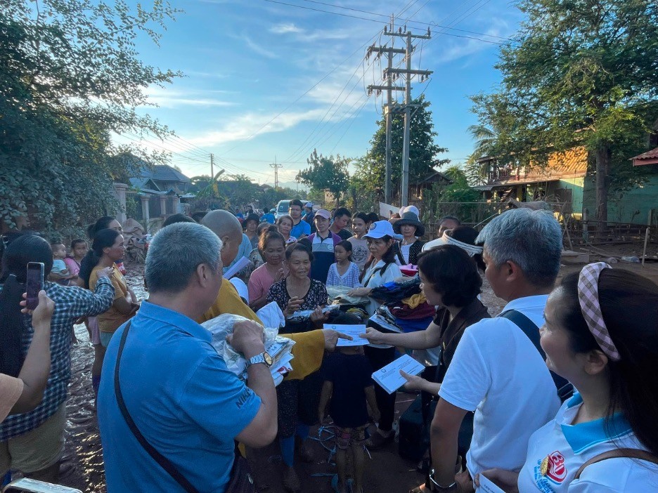 Trong tổng số tiền kêu gọi quyên góp được, TLSQ đã trích 200.000.000 Kíp (tương đương khoảng 200.000.000 đồng) cùng với số tiền 300.000.000 Kíp (tương đương khoảng 300.000.000 đồng) do các chư tăng ni, phật tử chùa Phật Tích, chùa Sokpaluang tại Vientaine quyên góp được, số tiền này được trao tận tay cho 500 hộ gia đình thuộc 5 bản (bản Khone; bản Luang; bản Mai; bản Pasack; bản Vieng Nue) của tỉnh Luang Nam Tha bị thiệt hại nặng, mỗi hộ gia đình 1.000.000 Kíp (tương đương khoảng 1.000.000 đồng).