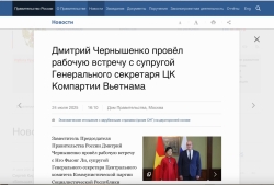| Truyền thông Nga đưa tin đậm nét về chuyến thăm của Phu nhân Ngô Phương Ly Nhiều cơ quan truyền thông lớn của Nga như TASS, RIA Novosti, Коммерсант, Российская газета, Sputnik… đã đồng loạt đưa tin về chuyến thăm của ... |