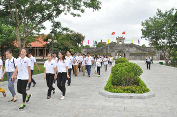 | Các đại biểu Trại hè Việt Nam 2015 tại Thành cổ Quảng Trị. (Ảnh: Cảnh Tiêu) |