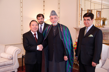 | Tổng thống Afghanistan Hamid Karzai tiếp Đại sứ Nguyễn Việt Hưng (bìa trái) tại Kabul. |