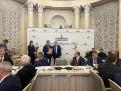 | Đoàn Việt Nam làm việc với Đại sứ Vishal V.Sharma, Chủ tịch của Kỳ họp lần thứ 20 của Uỷ ban Liên Chính phủ Công ước bảo vệ di sản văn hoá phi vật thể. (Ảnh: Nguyễn Khanh) |