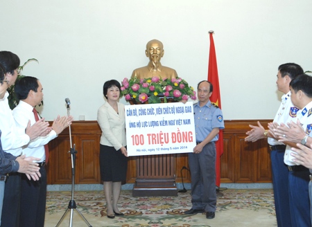 Thay mặt các cán bộ, chiến sĩ đang làm nhiệm vụ trên biển, Thiếu tướng Hoàng Văn Đồng và Phó Cục trưởng Cục Kiểm ngư Nguyễn Văn Trung đã cảm ơn sự quan tâm, động viên kịp thời của các cán bộ, công chức ngành Ngoại giao cũng như của cán bộ, nhân viên ngành Dầu khí đối với lực lượng thực thi pháp luật trên biển. Đại diện hai lực lượng khẳng định, bằng tất cả khả năng cho phép, các lực lượng tiếp tục bám biển, kiên quyết trong việc giữ gìn chủ quyền biển đảo và thềm lục địa Việt Nam, hoàn thành xuất sắc nhiệm vụ được giao; đáp ứng sự tin yêu của đồng bào, chiến sĩ trên khắp cả nước đối với Lực lượng Kiểm ngư và Cảnh sát biển.