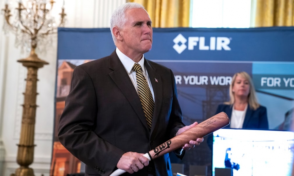 | Phó tổng thống Mỹ Mike Pence với cây gậy bóng chày BWP ở Phòng Đông. (Nguồn: EPA) |