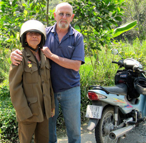 | Cựu binh Mỹ Suel D. John chụp ảnh với một cựu binh Việt Nam tại Quảng Bình. |