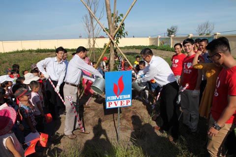 Phát biểu tại buổi lễ, Ông Trần Bình Minh – Phó Tổng Giám đốc PVEP tin tưởng, trong tương lai không xa, món quà thiết thực này sẽ góp phần giúp tập thể thầy trò Nhà trường có một khuôn viên xanh mát, sạch đẹp, góp phần tạo điều kiện tốt hơn cho các học sinh mầm non và các thầy cô giáo trong việc chăm sóc và truyền đạt kiến thức. Đúng như chủ đề của chương trình “Trồng cây hôm nay – Gây dựng cho mai sau”.
