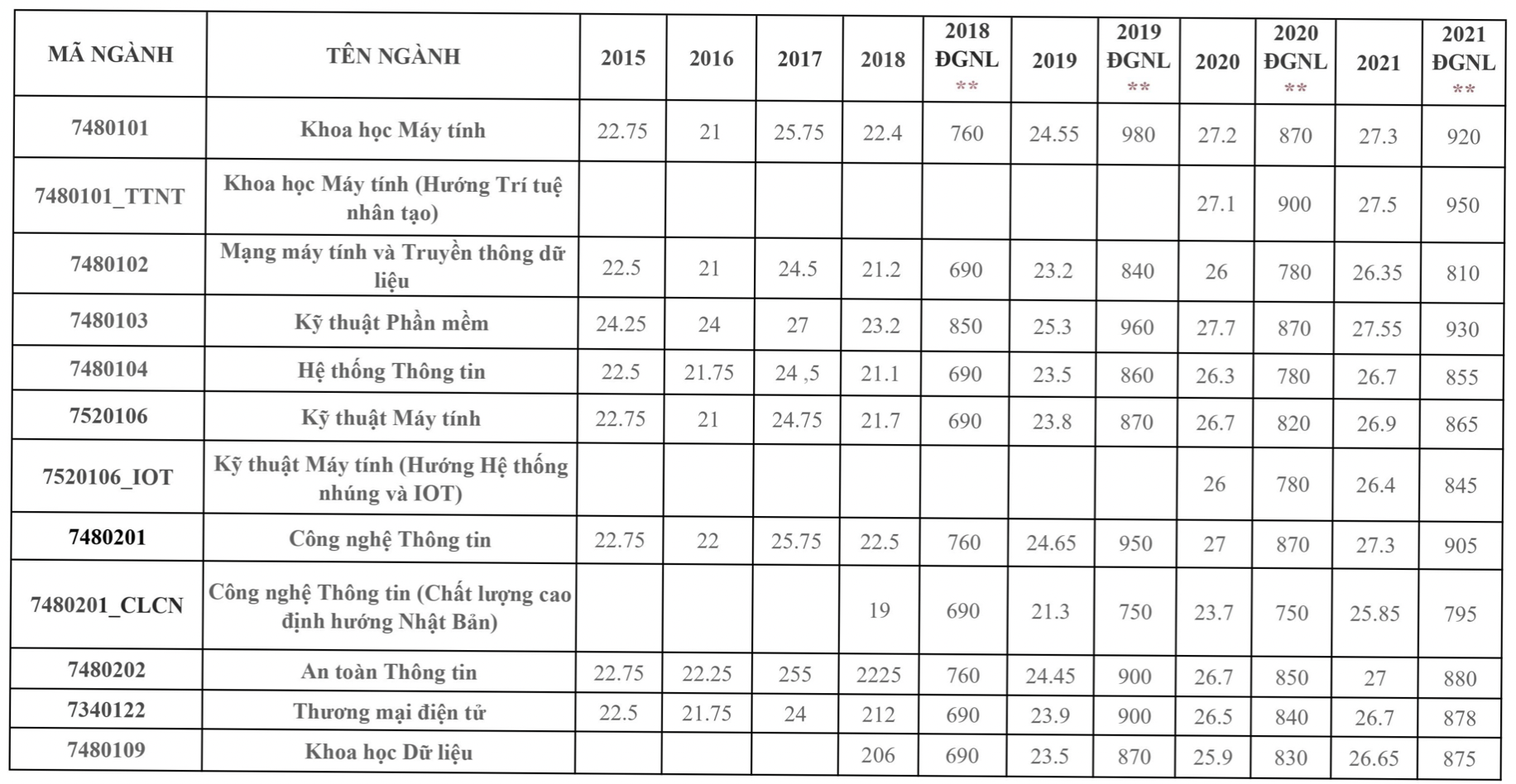 Tham khảo điểm chuẩn Trường Đại học Công nghệ Thông tin các năm trước: