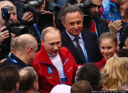 | Ông Putin xuống sân băng chúc mừng Lipnistkaia (Nguồn: Huffington) |