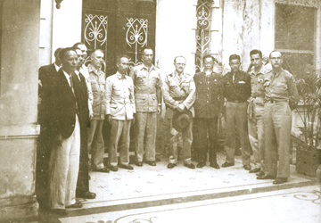 | Chủ tịch Hồ Chí Minh (giữa) tại Lễ ký Hiệp định sơ bộ Việt - Pháp ngày 6/3/1946, 38 Lý Thái Tổ, Hà Nội. |