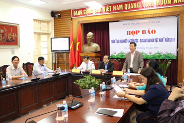 | Buổi họp báo giới thiệu Tuần lễ “Đại đoàn kết các dân tộc - Di sản văn hóa Việt Nam”. (Nguồn: BTC) |