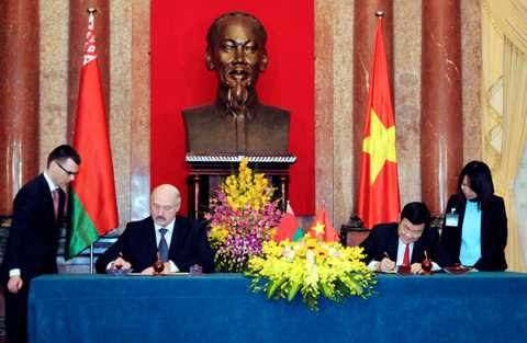 Chủ tịch nước Trương Tấn Sang khẳng định Việt Nam coi trọng củng cố và tăng cường tình hữu nghị truyền thống và quan hệ hợp tác nhiều mặt tốt đẹp giữa hai nước. Tổng thống A.Lukashenko nhấn mạnh coi Việt Nam là một trong các ưu tiên đối ngoại của Belarus tại khu vực Châu Á. Hai nhà lãnh đạo bày tỏ quyết tâm phấn đấu để quan hệ hai nước có những bước phát triển mới tích cực, thực chất, đáp ứng lợi ích của cả hai Bên.