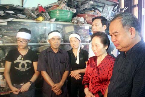 | Ngày 31/7, Phó Chủ tịch nước Nguyễn Thị Doan đã có buổi làm việc với lãnh đạo tỉnh Quảng Ninh về phương hướng khắc phục hậu quả, và cùng lãnh đạo Tỉnh tới chia buồn với gia đình các nạn nhân trong vụ sập đổ nhà do mưa lũ tại tổ 44, khu 4, phường Cao Thắng. (Nguồn: Báo Quảng Ninh) |