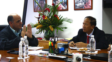 | Buổi làm việc giữa Đại sứ Ngô Tiến Dũng và Bộ trưởng Nhà ở Manuel Quevedo. |