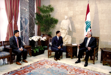 | Tổng thống Lebanon tiếp Đại sứ Nguyễn Quang Khai sau lễ trình Quốc thư. |