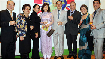 | Ông Vũ Quang Minh - Đại sứ đặc mệnh toàn quyền Việt Nam tại Vương quốc Anh và phu nhân chụp ảnh với bà con Việt kiều |