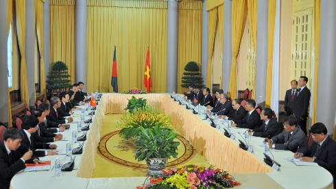 Cuộc hội đàm đã diễn ra trong bầu không khí thân mật, thắm tình hữu nghị. Tổng thống Bangladesh chân thành cảm ơn Nhà nước và nhân dân Việt Nam đã dành cho Đoàn sự đón tiếp trọng thị, thân tình và trân trọng mời Chủ tịch nước Trương Tấn Sang thăm hữu nghị chính thức Bangladesh vào thời gian thuận tiện. Chủ tịch nước Trương Tấn Sang cảm ơn và ghi nhận để hai nước sẽ thu xếp theo con đường ngoại giao.