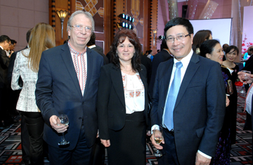 | Đại sứ Bungaria Evegueni Stoytchev và phu nhân chụp ảnh lưu niệm cùng Phó Thủ tướng, Bộ trưởng Ngoại giao Phạm Bình Minh. |