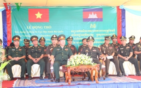 Sáng 18/8, tại trụ sở Cục Địa hình Quân sự - Bộ Quốc phòng Campuchia diễn ra lễ khởi công xây dựng nhà in bản đồ quân sự hiện đại, với kinh phí ban đầu trên 200.000 USD là quà tặng của Bộ Quốc phòng Việt Nam.