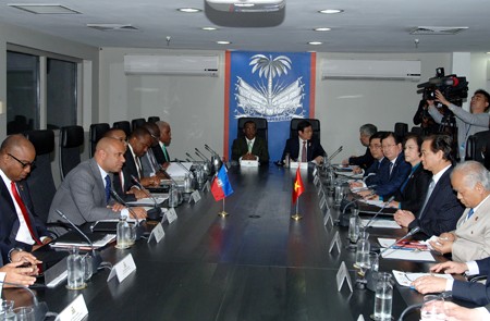 Hội kiến với Thủ tướng Nguyễn Tấn Dũng, Tổng thống Haiti Michel Martelly khẳng định quan hệ hai nước có những bước phát triển quan trọng, trong đó có việc Chính phủ Haiti mở Đại sứ quán tại Hà Nội, cơ quan đại diện duy nhất của Haiti ở Đông Nam Á. Tổng thống Haiti đánh giá cao việc ký kết Hiệp định khung về Thương mại và Đầu tư song phương, thắt chặt quan hệ hợp tác về viễn thông với Liên doanh NATCOM và về an ninh lương thực với những chuyến tàu chở gạo đầu tiên từ Việt Nam đến Haiti. Theo đề nghị của Thủ tướng Haiti, mỗi năm Việt Nam đã cung cấp cho Haiti khoảng 200.000 tấn gạo, và cho đến nay đã đưa khoảng 4 chuyến tàu sang Haiti, với ước chừng khoảng 700.000-800.000 tấn.