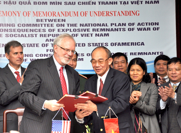 Ông Bùi Hồng Lĩnh, Thứ trưởng Bộ Lao động, Thương binh và Xã hội, Phó Trưởng Ban chỉ đạo Nhà nước về Chương trình hành động quốc gia khắc phục hậu quả bom mìn sau chiến tranh (Ban chỉ đạo 504), thay mặt Chính phủ Việt Nam và Đại sứ Hoa Kỳ tại Việt Nam David Shear thay mặt Chính phủ Hoa Kỳ ký kết biên bản ghi nhớ này.